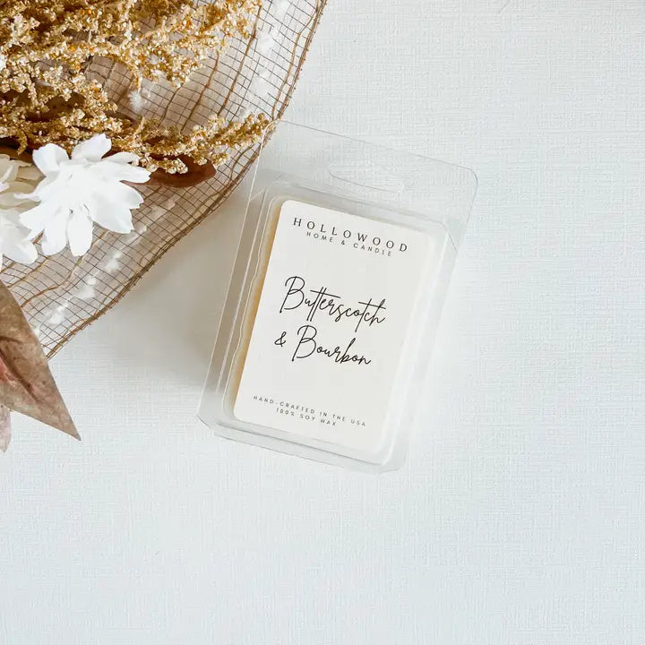 Indulge your senses with our Butterscotch and Bourbon wax melt. Top notes of peppercorn and warm cardamom blend with middle notes of rich butterscotch and brown sugar, finished off with aged bourbon and oak accents for a truly luxurious fragrance. 2.8 ounces of pure magic! Just pop them into a wax warmer to set the mood. Our wax melts are made from 100% soy wax and top-notch, clean oil for the ultimate sensory experience! Smells are like the secret sauce that brings your autumn, fall or Halloween decorations to life! Acquire the complete collection! Immerse yourself in this luxurious fragrance collection, available in CANDLES, 8 and 13 ounces, linen spray, wax melts, and car diffusers.