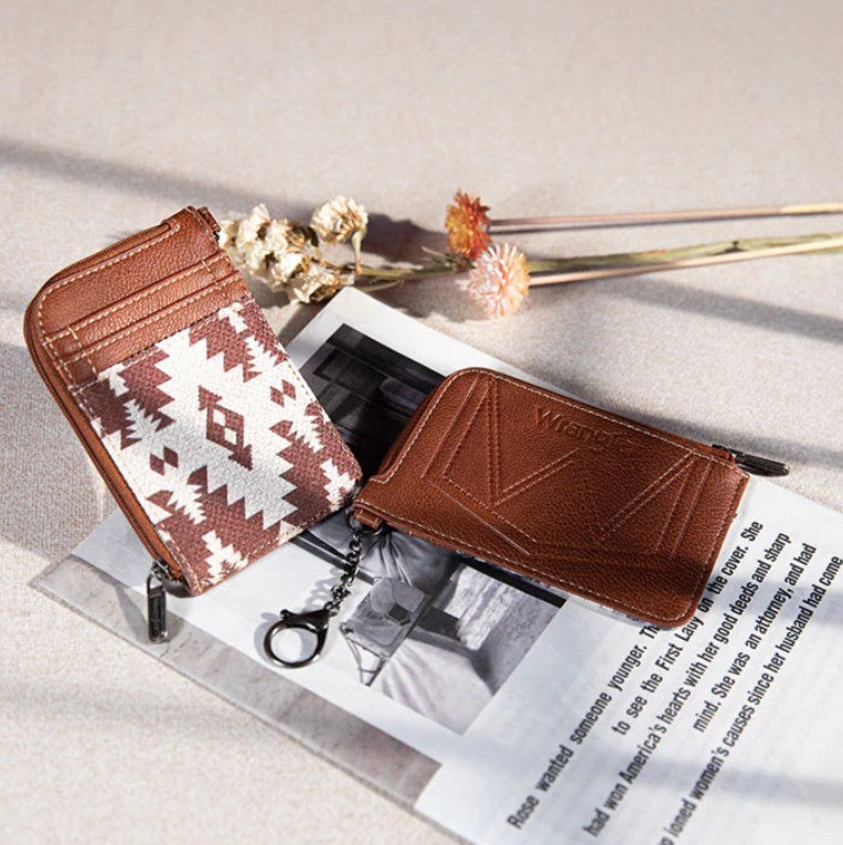 Wrangler All-over Aztec Print Mini Zip Card Case - LIGHT COFFEE